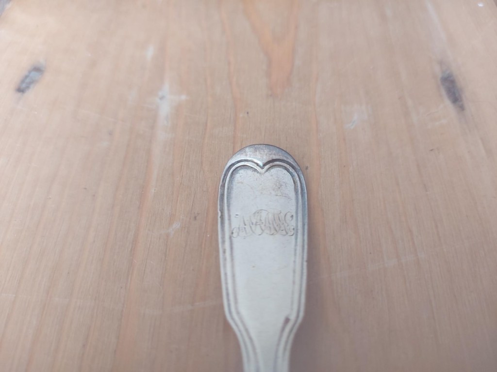 There are no wedding photos and the announcement in the newspapers is concise. But I do have this spoon and fork set, labelled by someone in my family with ‘London 1866’. The engraving does not photograph well and in any case is so elaborate that it is difficult to read but it does appear that the first letter could be an ‘A’, so this could well have been a wedding gift. I only hope that if Althea ate her Transparent Pudding with it, it was better than mine…