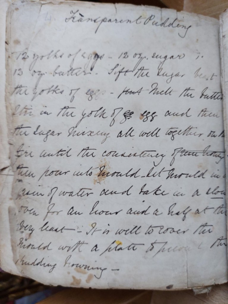 Had I mis-represented Transparent Pudding or was there a good reason it fell out of favour? It had certainly been around for a while before Althea came across it. In 1769, Elizabeth Raffald gives a recipe for it in her The Experienced English Housekeeper. In 1829 it features in A New System of Domestic Cookery formed upon Principles of Economy and Adapted to the Use of Private Families by A Lady but with the addition of some grated nutmeg, puff pastry and the potential additions of ‘candied orange and citron’. If its fortunes waned in England, it appears to have crossed over to the USA with some success; recipes for it on American websites abound, again though with the addition of puff pastry. I wonder why Althea chose to omit this part of the recipe?