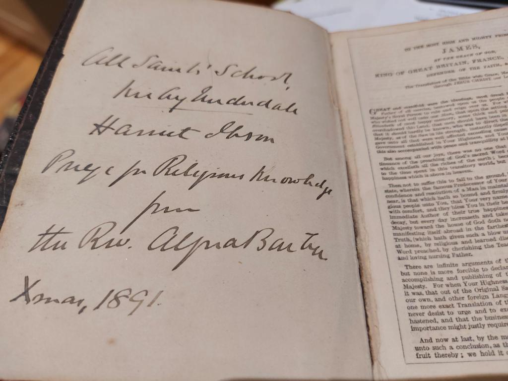 Harriet left school in 1894. There is no record of what she does at this point, although I imagine she went into service, as by 1901 she is working as a servant in nearby Pickering. There is no record of what level of literacy she managed to achieve. There is a bible (below), won as a prize for religious knowledge. And, of course, her recipe book.