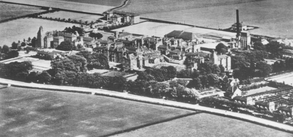 East Riding Asylum, viewed from above, showing the many fields and gardens in and around the buildings. Photograph reproduced with kind permission of https://www.countyasylums.co.uk/
